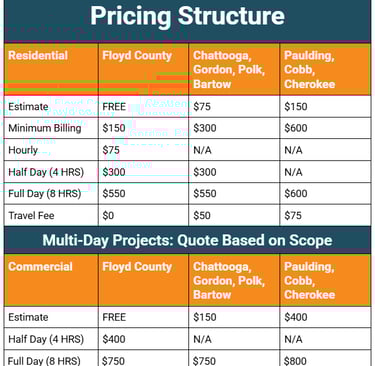 For larger projects outside our standard service area, we offer extended service options that include travel and overnight accommodations. This allows us to take on multi-day or full day work for homeowners and businesses located farther from Northwest Georgia.